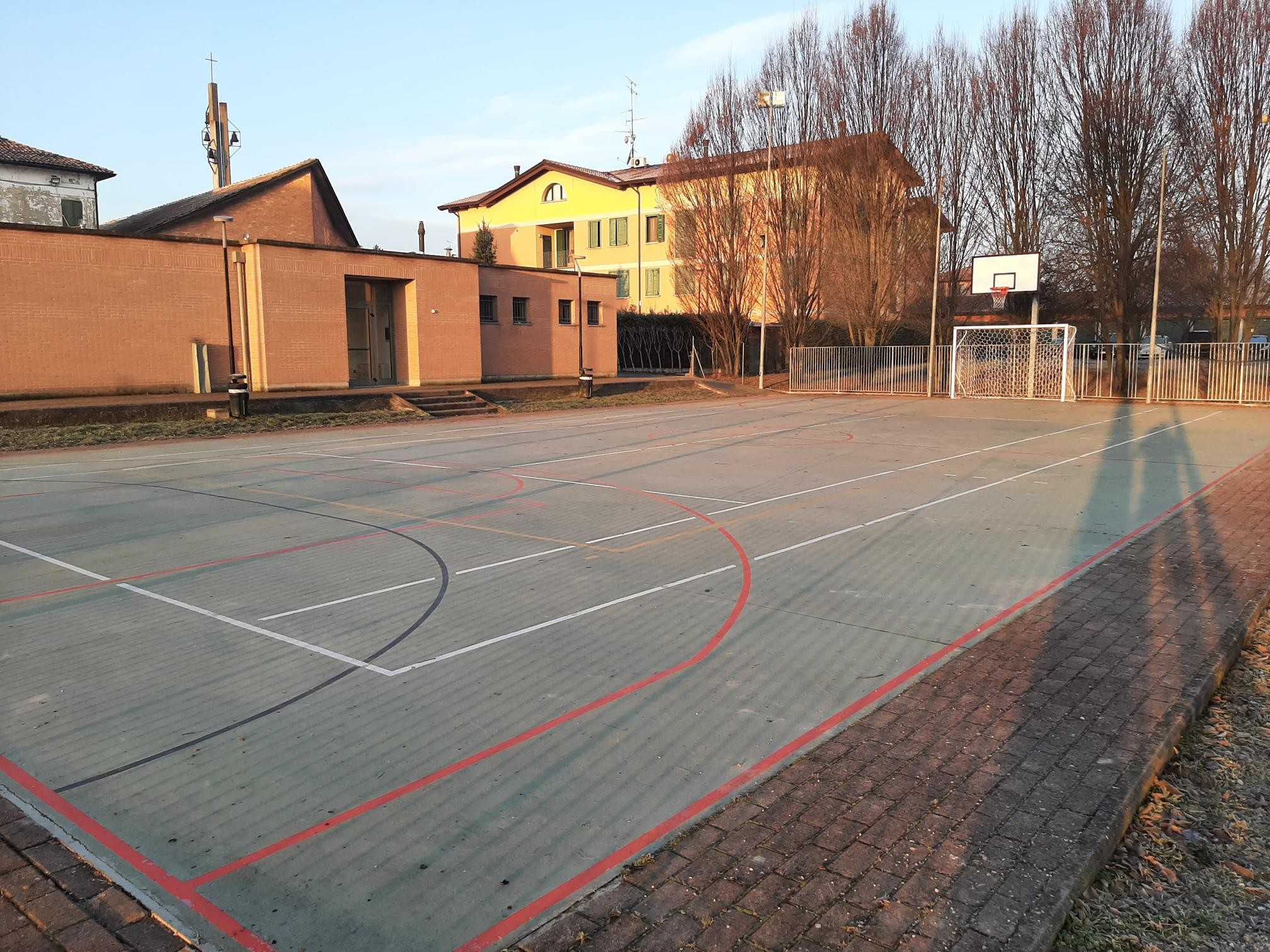 La passione per lo sport è la forza che lo ha fatto rinascere: pista in cemento di nuova ristrutturazione (righe nuove, reti da basket nuove stile NBA, reti da calcio a 5 nuove, porte rimesse a nuovo).