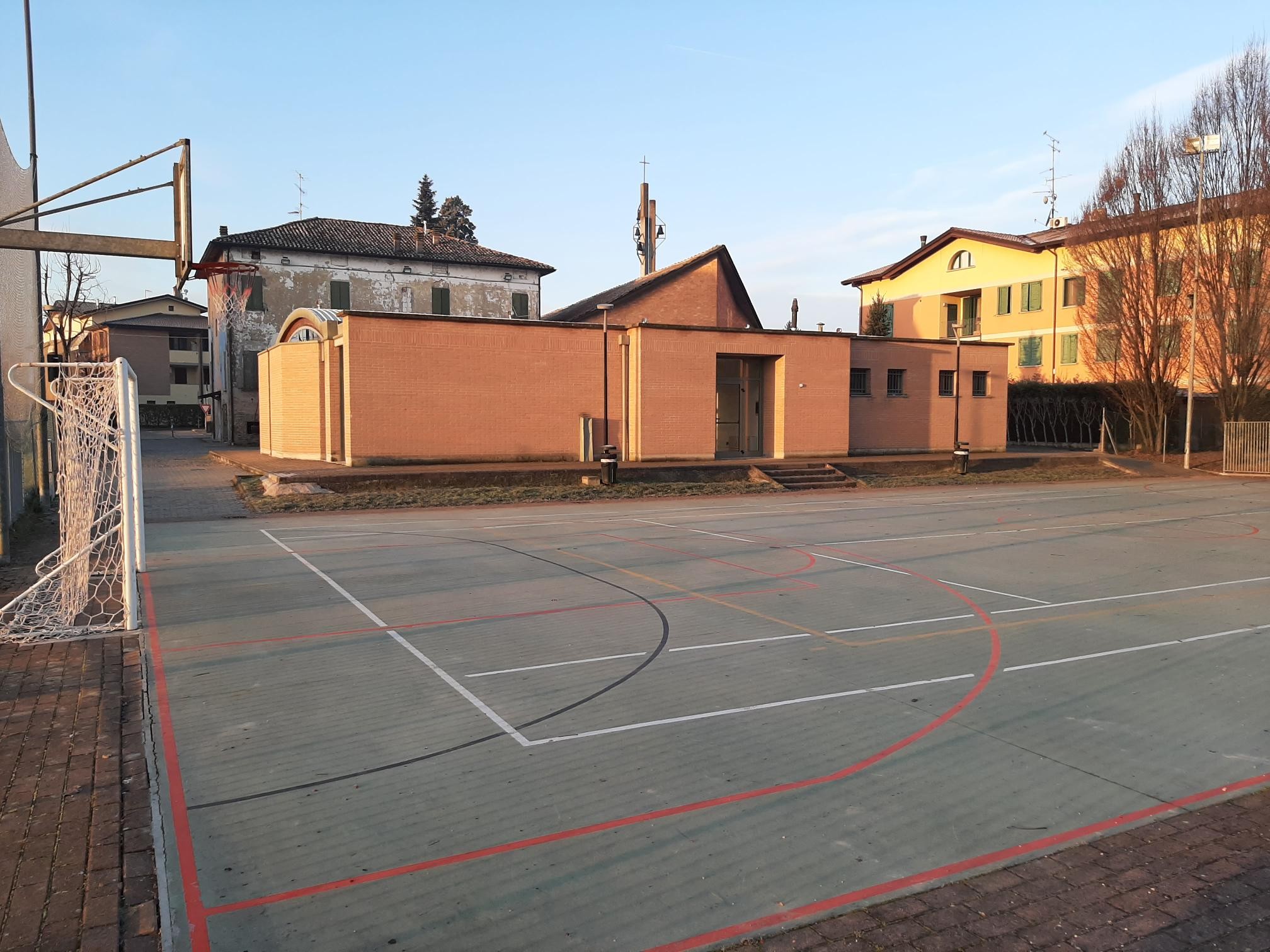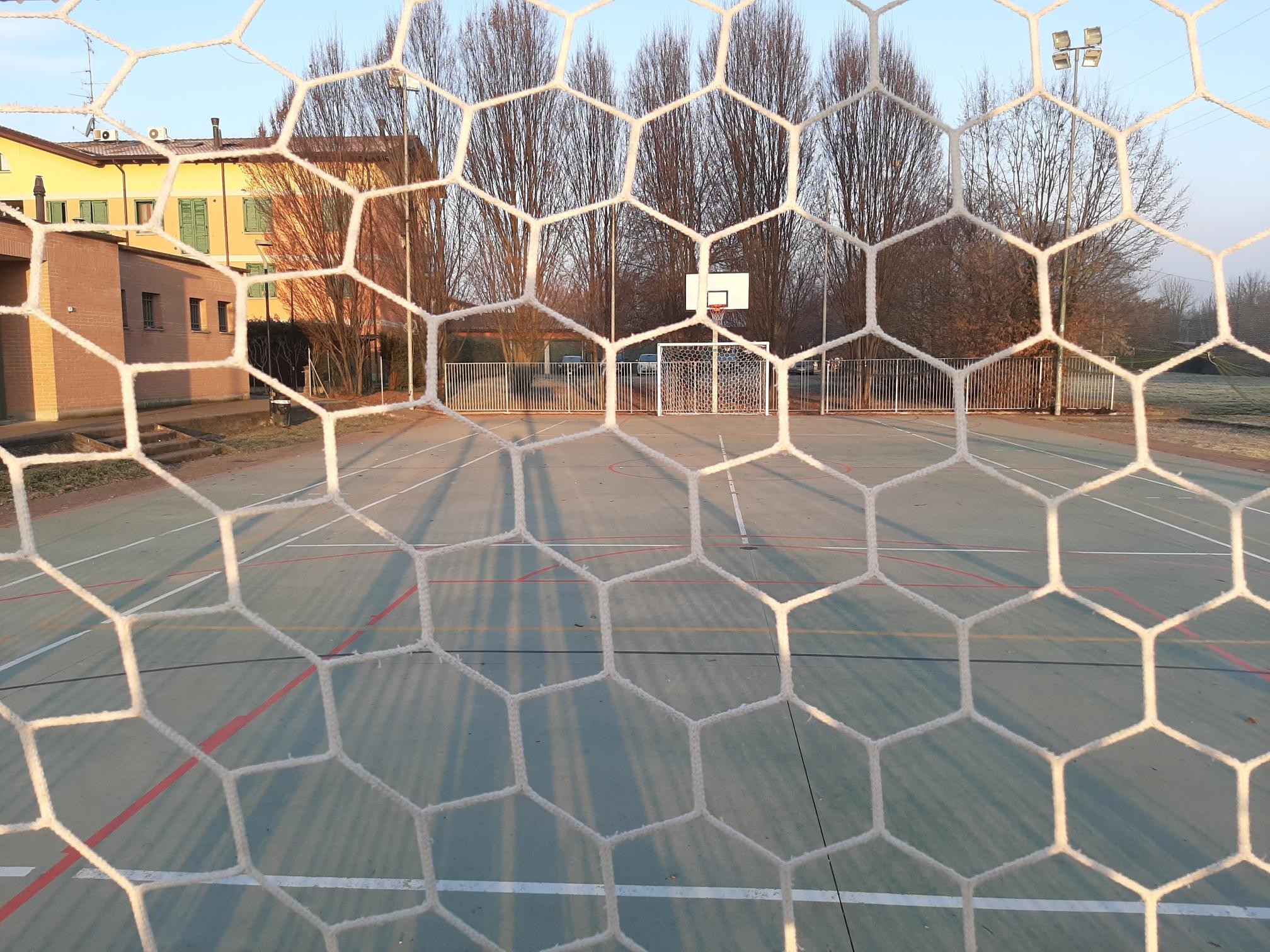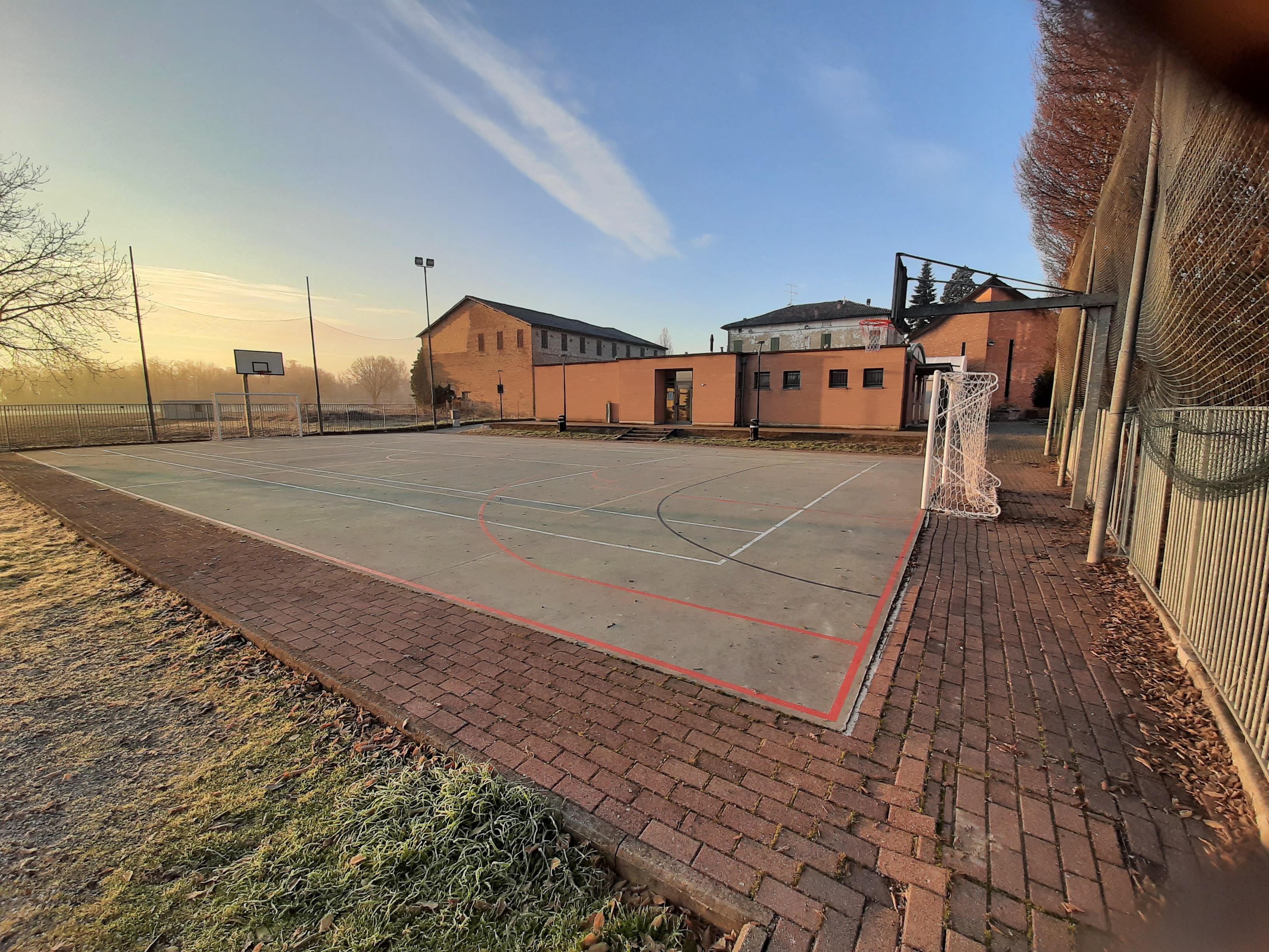 La passione per lo sport è la forza che lo ha fatto rinascere: pista in cemento di nuova ristrutturazione (righe nuove, reti da basket nuove stile NBA, reti da calcio a 5 nuove, porte rimesse a nuovo).